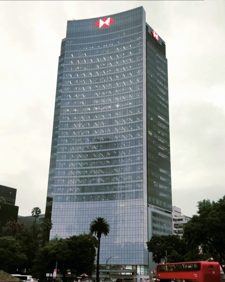 Torre HSBC. Es pionera en Latinoamérica al ser el primer edificio en obtener la certificación LEED nivel Oro. Con una superficie de 45,876 metros cuadrados, alberga oficinas, un auditorio, gimnasio y diversas amenidades, integrando prácticas sustentables en su operación diaria (COMECA, 2022).