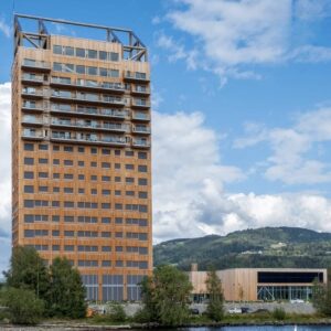 Con vistas al lago Mjøsa, este rascacielos de madera fue, hasta hace poco, el más alto del mundo. Construido 100% con madera estructural, es símbolo de la apuesta escandinava por la arquitectura verde.