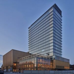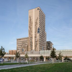 Este edificio combina arquitectura nórdica con tecnología de vanguardia. Toda su estructura está hecha con madera local, y alberga desde un teatro hasta una galería de arte. Un ícono de cómo la cultura y la sostenibilidad pueden convivir en vertical.